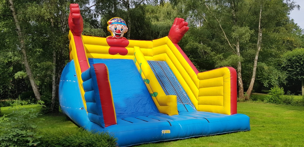 Eine Hüpfburg kennt jeder...mieten Sie hier gleich eine aufblasbare Riesenrutsche welche wir als Clown und Dschungel in unserer Vermietung haben...